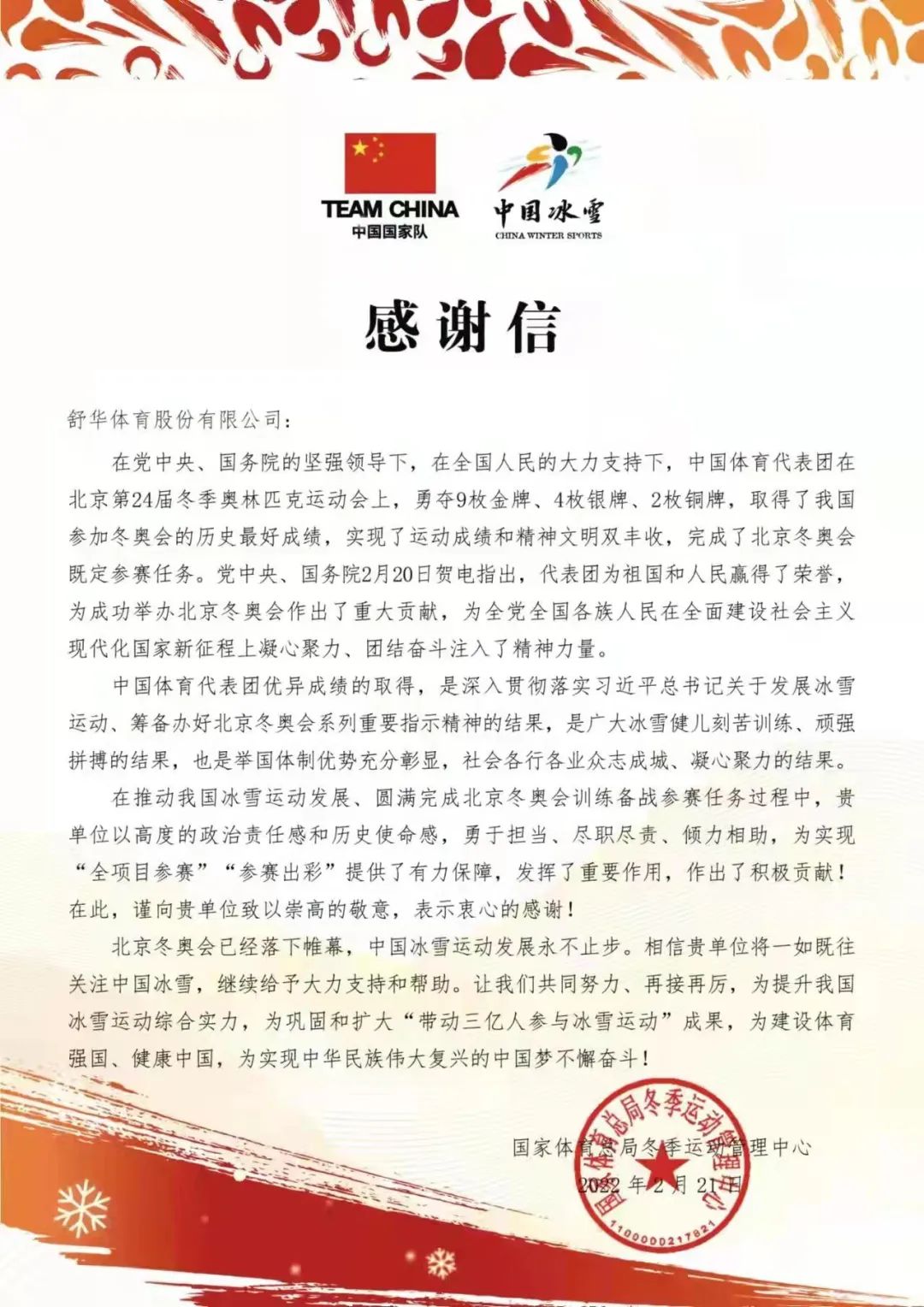 Cooperation with Chinese Olympic Committee, SHUHUA became COC official supplier during 2013-2016. Additionally, SHUHUA established Running Search Center with Beijing Sport University.